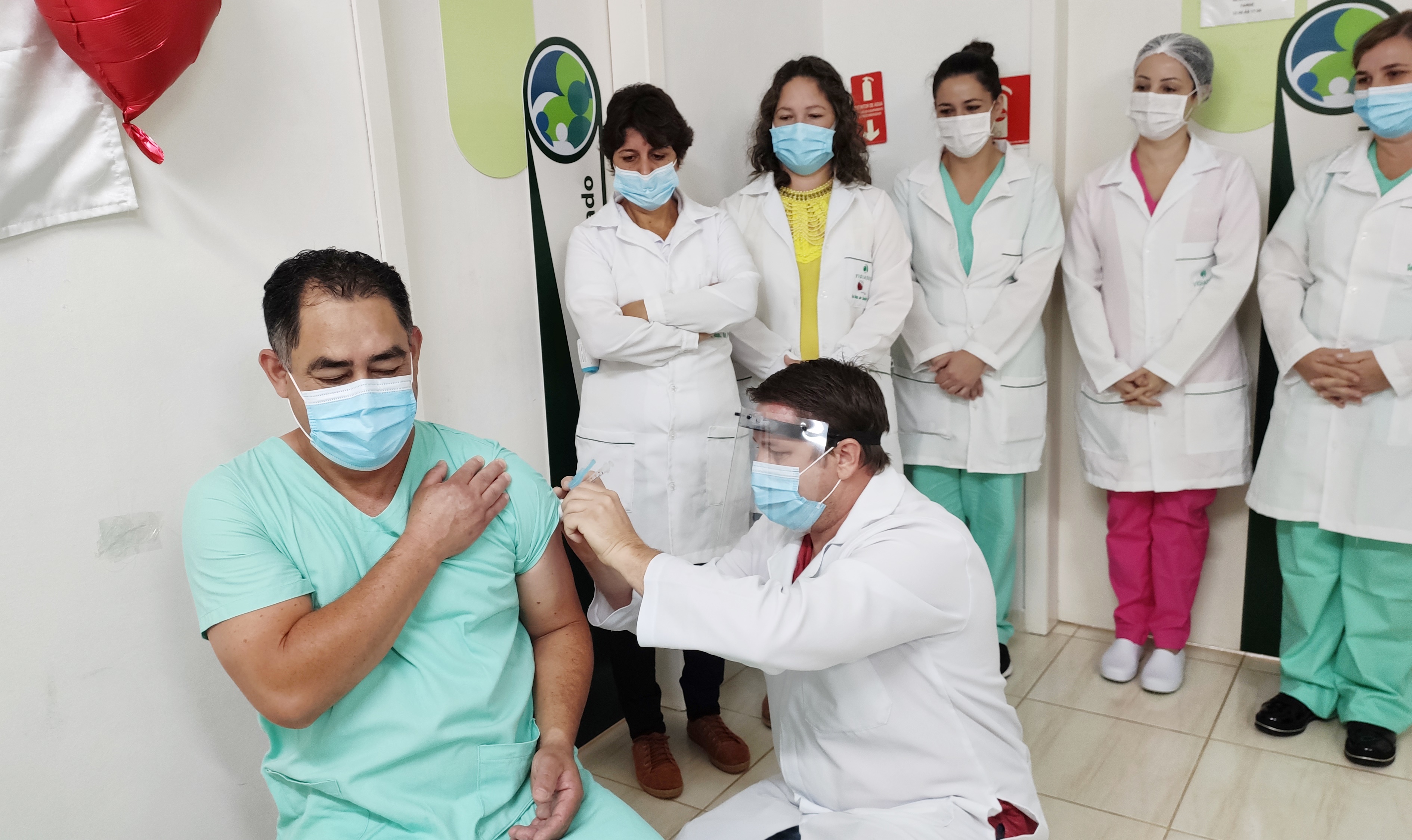 Profissionais de saúde do município e do hospital Dona Darcy Vargas receberam a primeira dose da vacina Coronavac