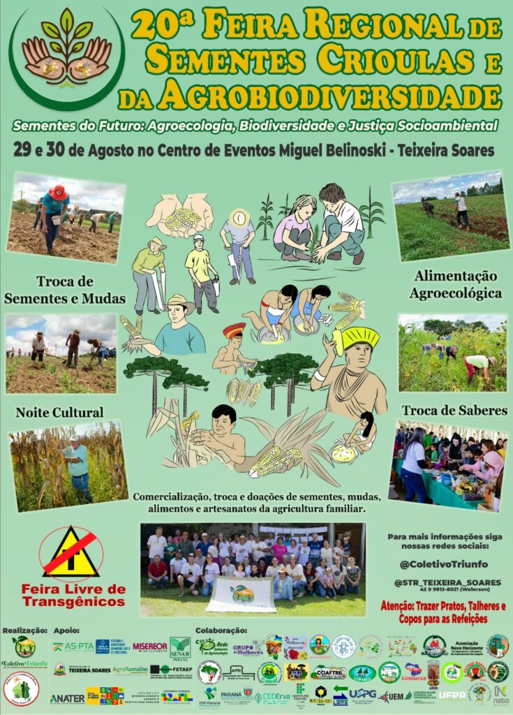 A 20ª Feira Regional de Sementes Crioulas e da Agrobiodiversidade começou nesta sexta-feira (29) no Centro de Eventos Miguel Belinoski, em Teixeira Soares. A programação prossegue neste sábado (30) com troca de sementes, exposição, palestras e atividades culturais. A entrada é gratuita.