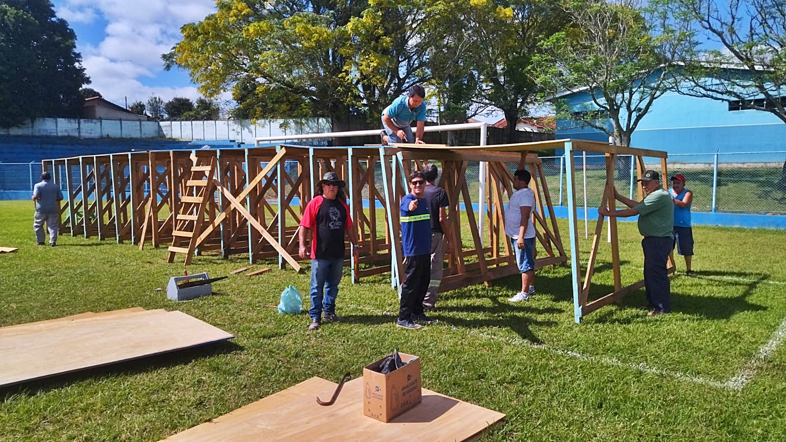 Confira abaixo mais imagens do começo dos trabalhos de montagem do cenário do Teatro da Paixão nesta segunda-feira.