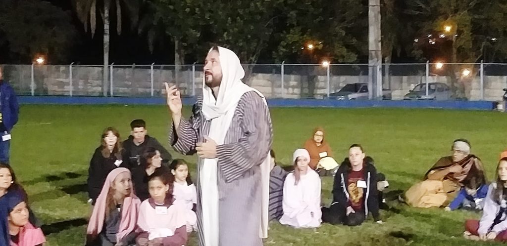 Outro que participa da apresentação é o advogado Vinícius da Rocha. Ele tinha apenas 10 anos quando ingressou no Grupo de Teatro São Francisco de Assis no ano 2000. “Comecei a atuar no Teatro como anjo, depois passei para o povo, e agora em 2023, faço quatro papeis: Lázaro, sacerdote na Mulher Adúltera e no templo e o bom ladrão na crucificação. Vamos dar um jeito e tentar, vai dar tudo certo. Para mim, parece que guardo Deus e Jesus Cristo junto comigo, faz lembrar muito. É muito importante que todos venham assistir e participar”, comentou.