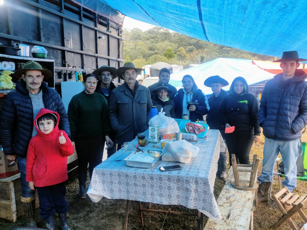 Um grupo do CTG Pousada de Tropeiro, de Fernandes Pinheiro, também está presente no CT Willy Laars. Adão Thiago Andrade trouxe a família para participar das provas de laço. “Viemos em família, laçamos em quatro irmãos e um filho. Não tem mulheres, elas só vêm de companheiras”, comentou.