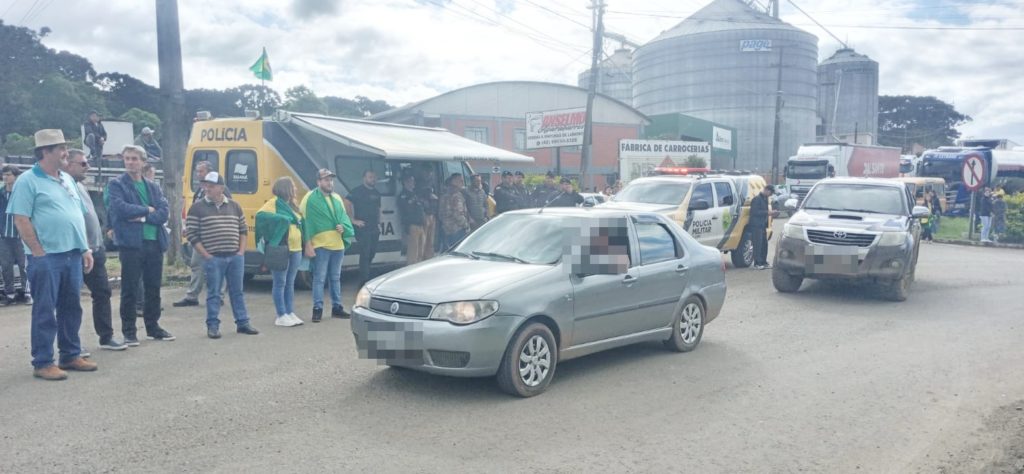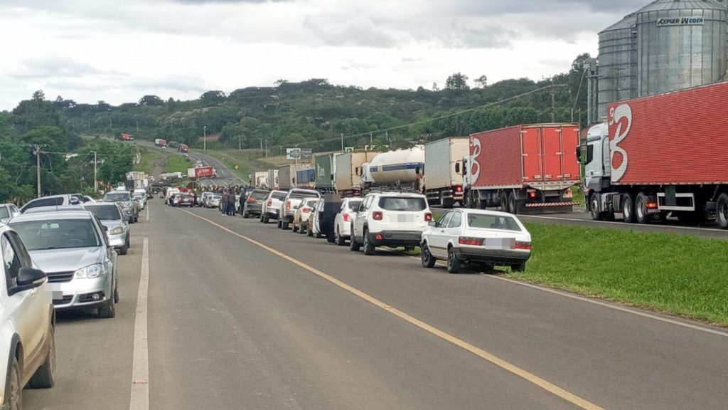 Hoje foi o terceiro dia de protesto na BR-277, em Irati. Na tarde de hoje, a Polícia Rodoviária Federal (PRF) esteve no local e solicitou a retirada da terra que foi colocada pelos manifestantes na altura do quilômetro 240 da rodovia, onde há um radar instalado. A medida teve o objetivo de liberar a passagem de veículos. No entanto, em seguida, foram colocados pneus de trator na pista.