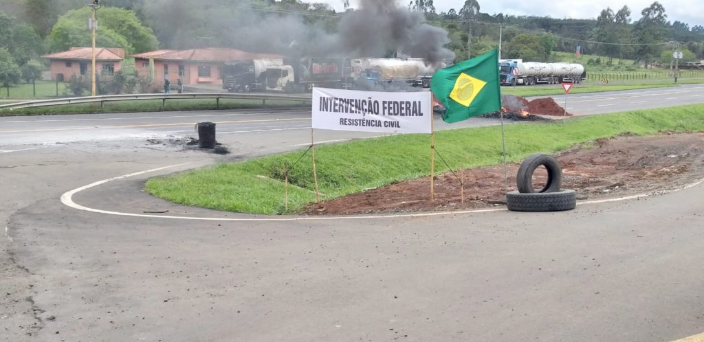 Faixa colocada nas margens da BR-277, em Irati, pede intervenção federal. Foto: Paulo Sava