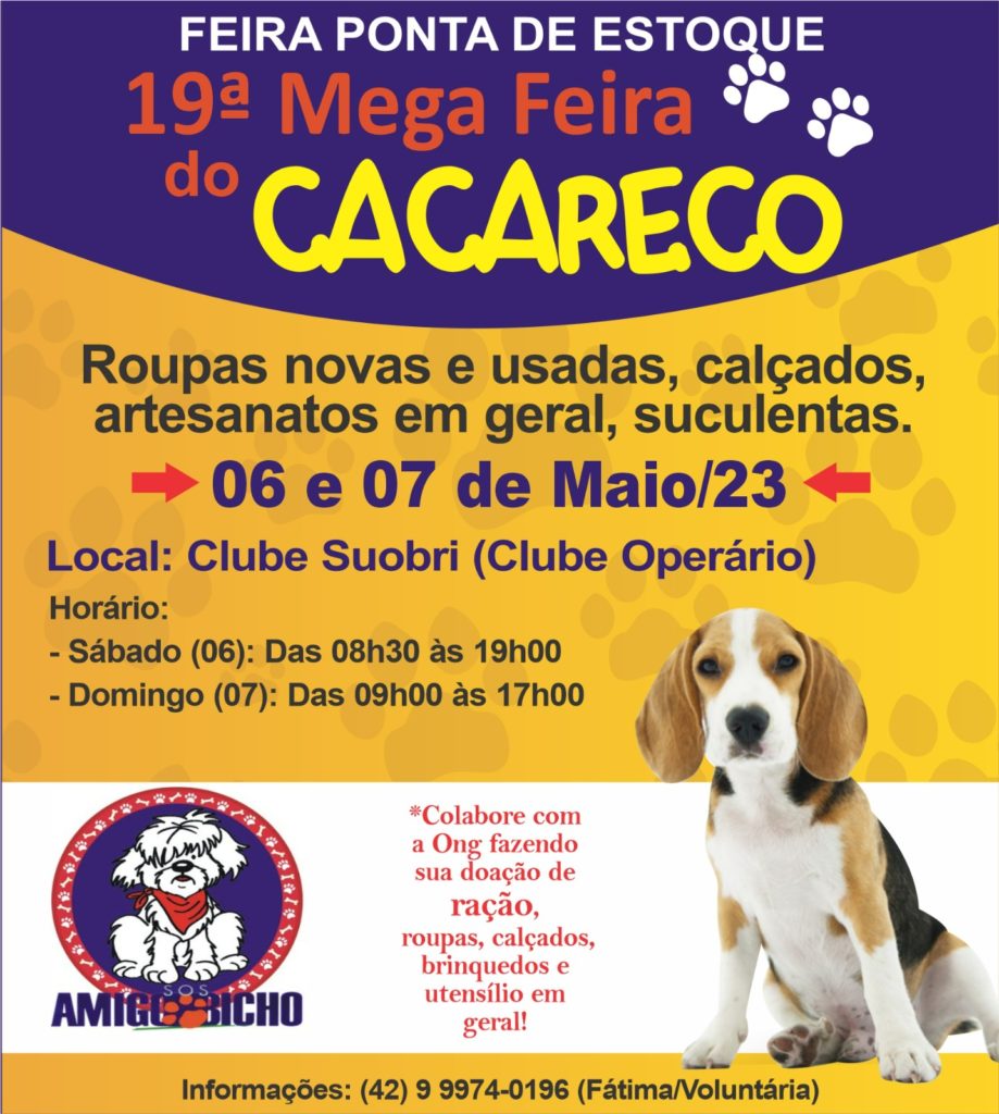 FEIRA PONTA DE ESTOQUE e 19ª MEGA FEIRA DO CACARECO, dias 06 e 07 de maio, no Clube Operário