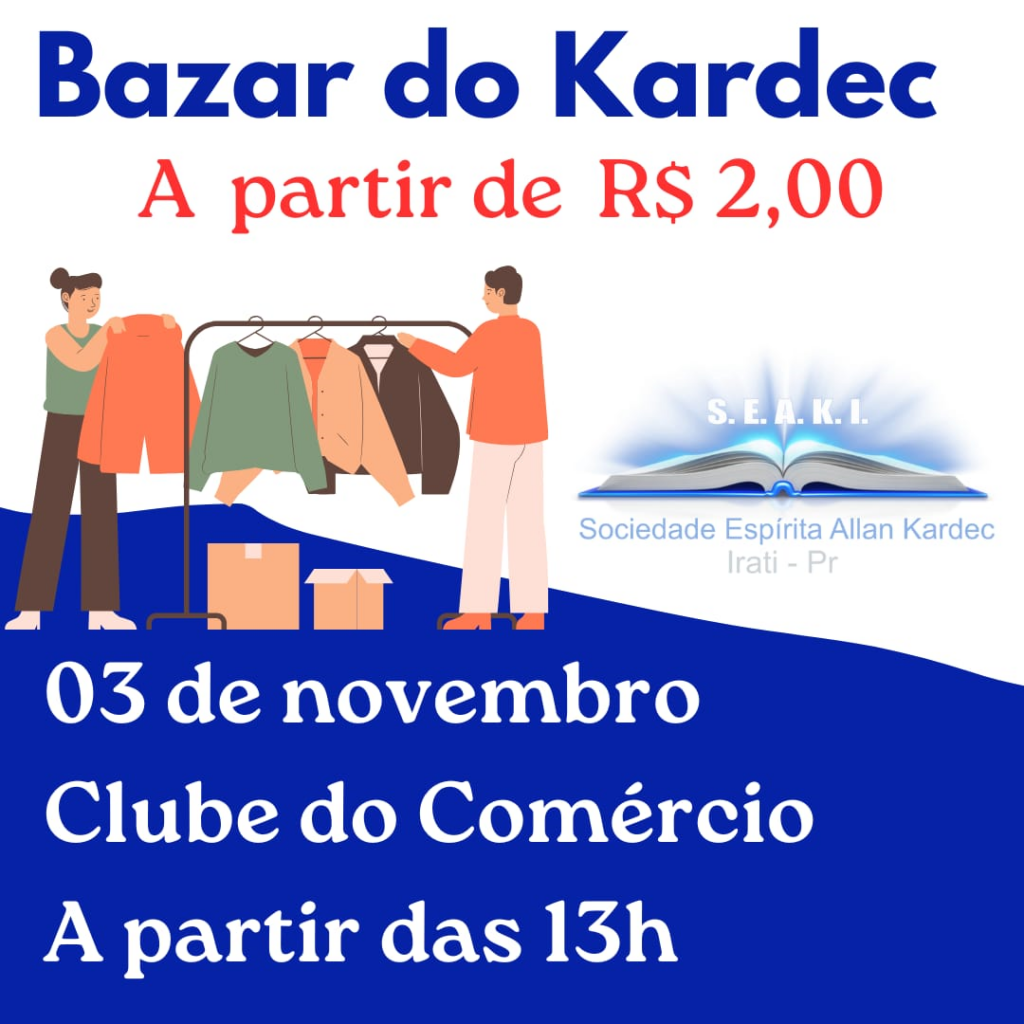 • Bazar do Kardec, domingo, a partir das 13h no Clube do Comércio, em frente a Casa da Cultura. Roupas, calçados e utensílios a partir de R$ 2,00