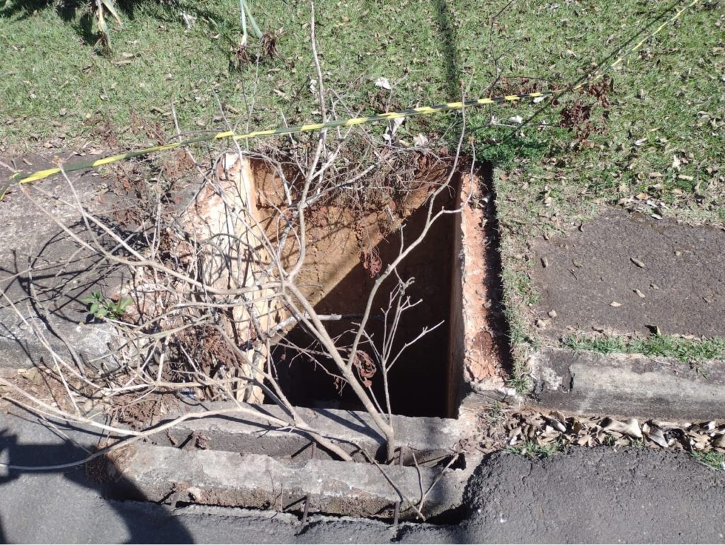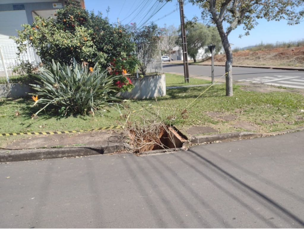 Ivo Brunicoski relata que na rua Ipiranga, no Alto da Glória, um pouco acima da obra do teatro, tem um bueiro com aproximadamente 2 metros de profundidade, que está sem tampa há vários dias, inclusive foi colocado uns galhos e uma fita de isolamento.