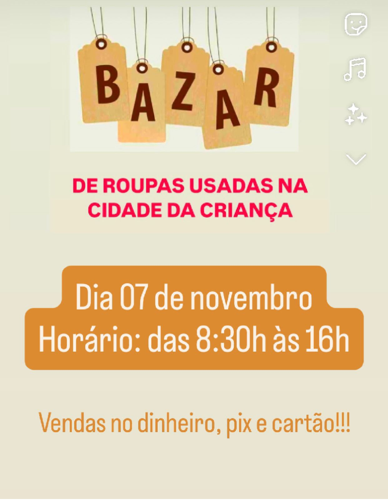 • Bazar de roupas usadas na Cidade da Criança, sexta-feira, das 08h30 as 16h00h