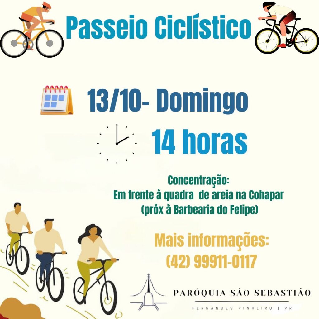 • A Paroquia São Sebastião de Fernandes Pinheiro promove passeio ciclístico, domingo, as 14h, com concentração em frente a quadra de Areia da Cohapar, próxima a Barbearia do Felipe. Informações 9.9911-0117