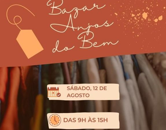 Bazar Anjos do Bem, neste sábado, dia 12, das 09h às 15h, no Clube do Comércio