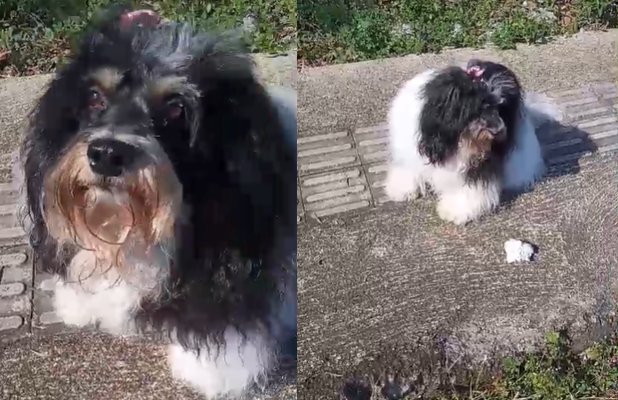 • Encontra-se na Rua Geraldo Teodoro Korevar, 131 – Serraria Korevar, uma cachorra lanuda branca e preta, com fita rosa, muito dócil. Contato 9.9932-1817