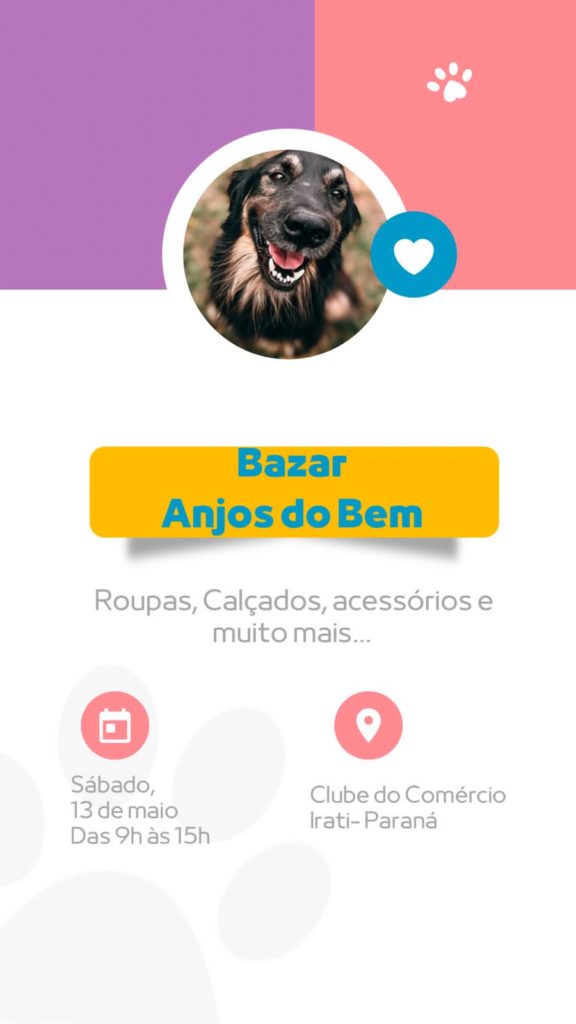 Bazar dos Anjos do Bem neste sábado dia 13, das 09hs as 15hs, no Clube do Comercio, com a venda de roupas, calçados, acessórios e muito mais.