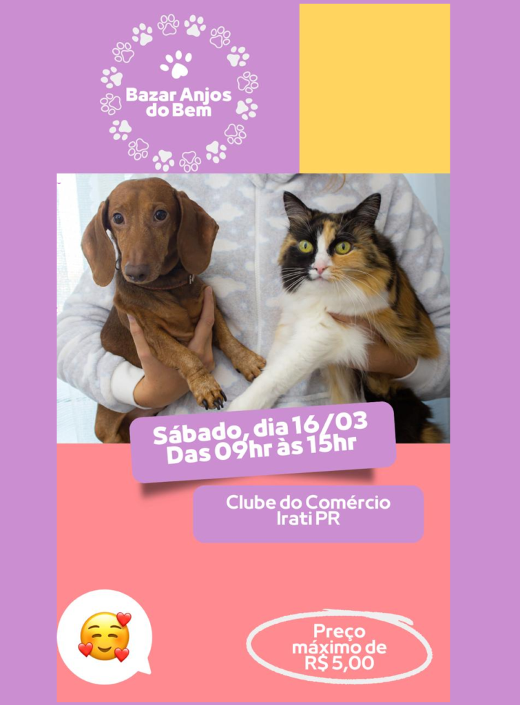 • Bazar ANJOS DO BEM, sábado, das 09 às 15h, no Clube do Comércio. Preço máximo R$ 5,00