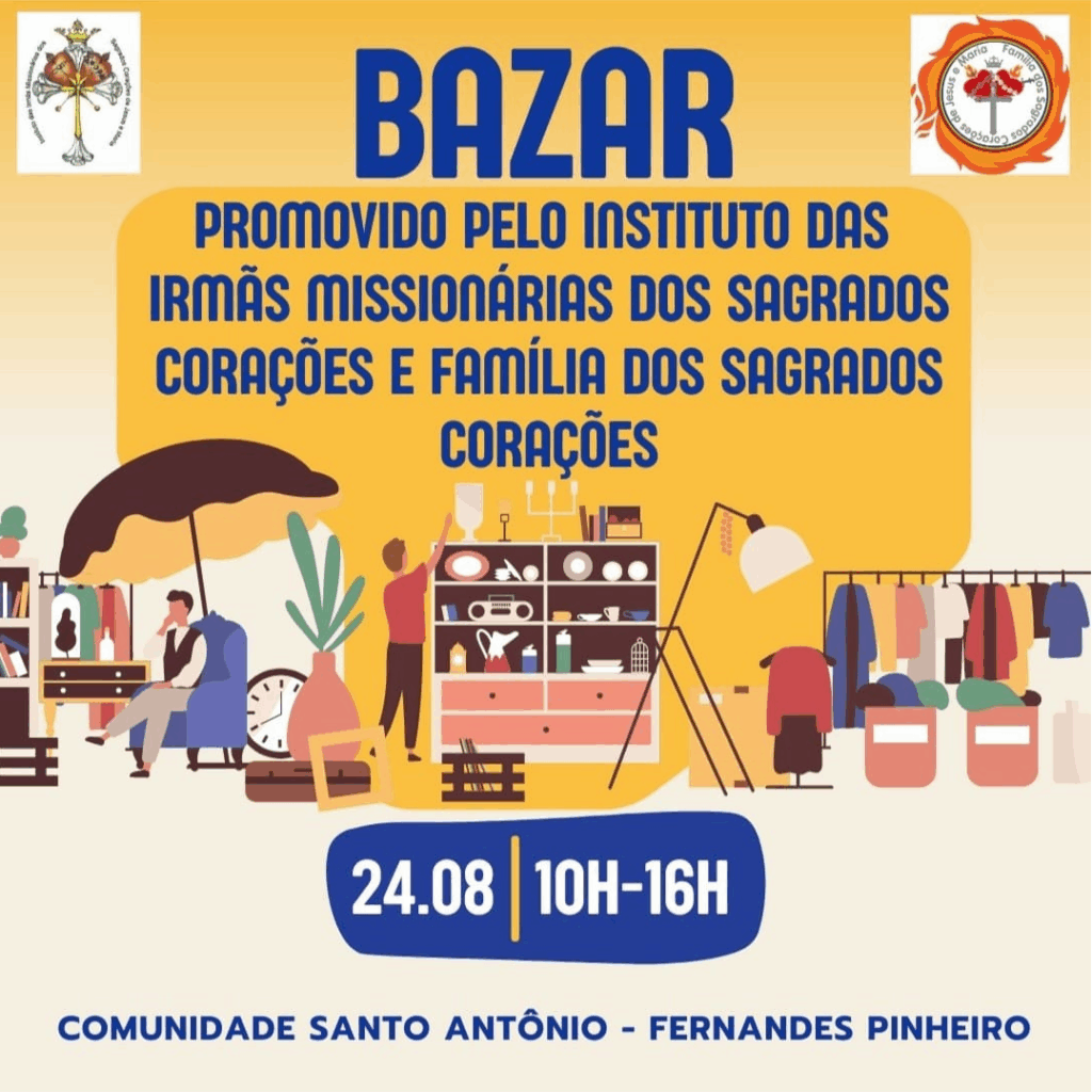 • Bazar promovido pelo Instituto das Irmãs Missionárias e Familia dos Sagrados Corações, domingo das 10 às 16h na Comunidade Santo Antonio em Fernandes Pinheiro