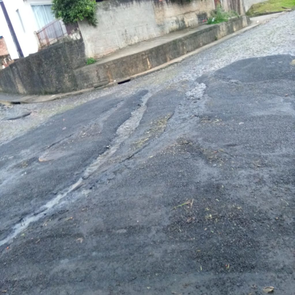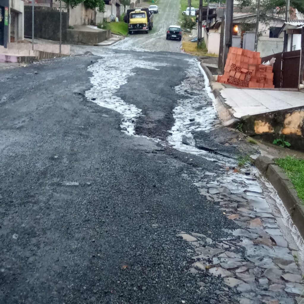 Cristiane Andrade compartilha a situação das ruas, que foram feitas melhorias no dia 1º de dezembro de 2022, com um material que parece “restos de asfalto que gera uma poeira engordurada” e está indo para o rio quando chove – Rua Maria Scheiffer e Rua São Vicente de Paula, conforme fotos enviadas. Mas relata que também outros pontos no bairro Vila Nova precisam de melhorias.