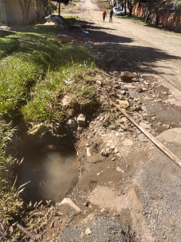 • Moradores do bairro Jardim Aeroporto reclamam de alagamentos e buracos na rua Ana Maria da Anunciação, em frente ao Patzyk. Segundo Sávio Ribeiro Borges, as manilhas estão entupidas e as valetas ficam cheias de água sempre que chove. Ele diz que a água invade sua casa e atrapalha a entrada e saída do portão. Além disso, afirma que já caiu com o carro no buraco que existe no local e que teme pela segurança das crianças que brincam na rua. Sávio conta que já procurou a prefeitura para resolver o problema, e a prefeitura alegou estar sem diesel para fazer o serviço, e que isso se arrasta há muito tempo. Sempre que isso acontece, ele mesmo tenta desentupir as manilhas por conta própria, já que o caso não é solucionado.