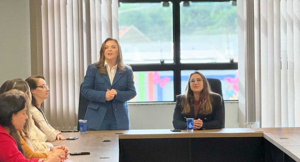 Secretária Leandre Dal Ponte apresentou selo na Aciai; entidade e Corpo de Bombeiros anunciaram interesse em aderir ao programa que reconhece empresas comprometidas com a prevenção à violência contra mulheres/ Reportagem de Diego Gauron
