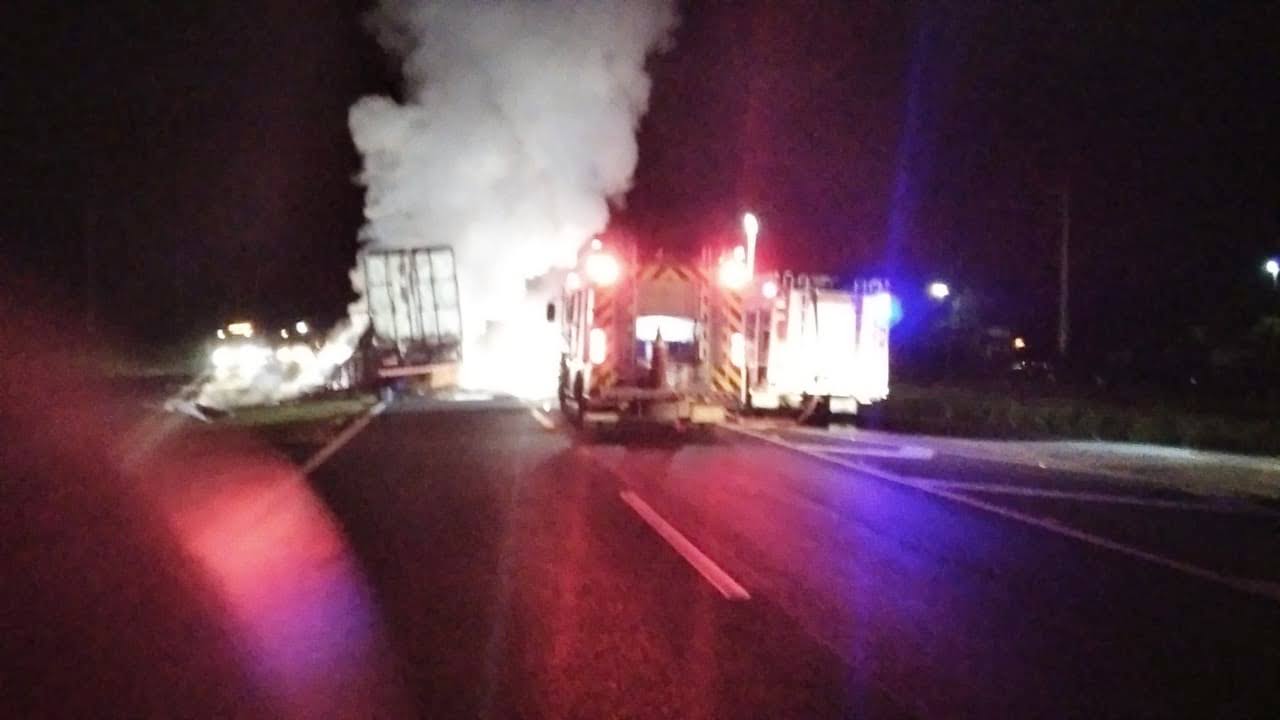 | Homem morreu carbonizado após acidente na BR-376, em Ponta Grossa. Foto: PRF/Divulgação |
