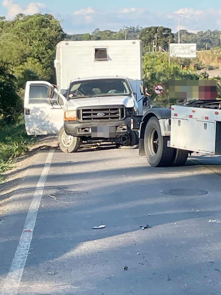 Um homem ficou ferido após um acidente entre um veículo Renault Captur e um caminhão Ford F-4000 na BR-153, em Rebouças, tarde de ontem. A colisão ocorreu no quilômetro 349 da rodovia, na entrada dos bairros Alto da Glória e Beira Linha.
