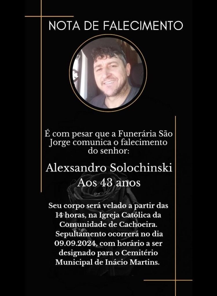 De acordo com informações da Funerária São Jorge, de Inácio Martins, ele está sendo velado na igreja católica da comunidade de Cachoeira. Já o sepultamento será realizado nesta segunda-feira, no Cemitério Municipal de Inácio Martins.