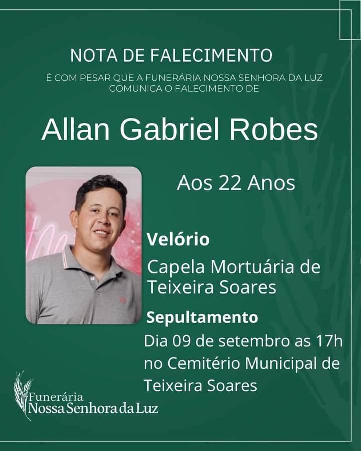 Allan atuava como Auxiliar de Serviços Gerais e era natural de Irati. Ele está sendo velado na Capela Mortuária de Teixeira Soares. Já o sepultamento ocorrerá no Cemitério Municipal de Teixeira Soares na tarde de segunda-feira.