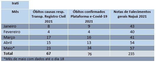 Em 2021, de março para cá, o número de óbitos de Covid quadruplicaram e, nos primeiros 18 dias do mês de maio, se observa que mais da metade das mortes registradas foram de Covid-19. Portanto, eis a prova, não se morre só de Covid, mas os óbitos pela pandemia são verdadeiros e a situação se agrava com a doença desenfreada.