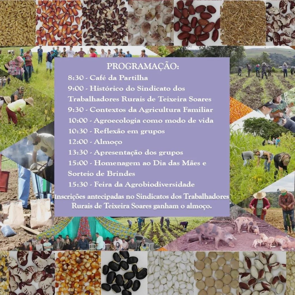 O evento começa com o Café da Partilha às 8h30, com diversos produtos da agricultura familiar. Em seguida, ocorre uma palestra às 9 h sobre o histórico do Sindicato dos Trabalhadores Rurais de Teixeira Soares. Logo em seguida, às 9h30, será realizada uma palestra sobre os contextos da Agricultura Familiar. Às 10 horas ocorrerá uma palestra sobre agroecologia com uma reflexão em grupo a partir das 10h30. O almoço será servido ao meio-dia com produtos da agricultura familiar.
