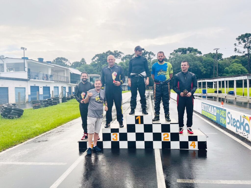 Pódio da categoria adulto na disputa do Kart Noel. Foto: Divulgação