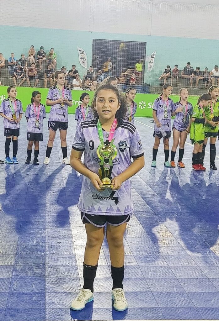 Helo foi bicampeã paranaense de futsal e artilheira da competição: Em novembro, Helo, que tem dez anos, se tornou bicampeã paranaense de futsal Sub-11 pela equipe de Quatro Barras, na competição disputada em Toledo, que teve dez equipes participantes.