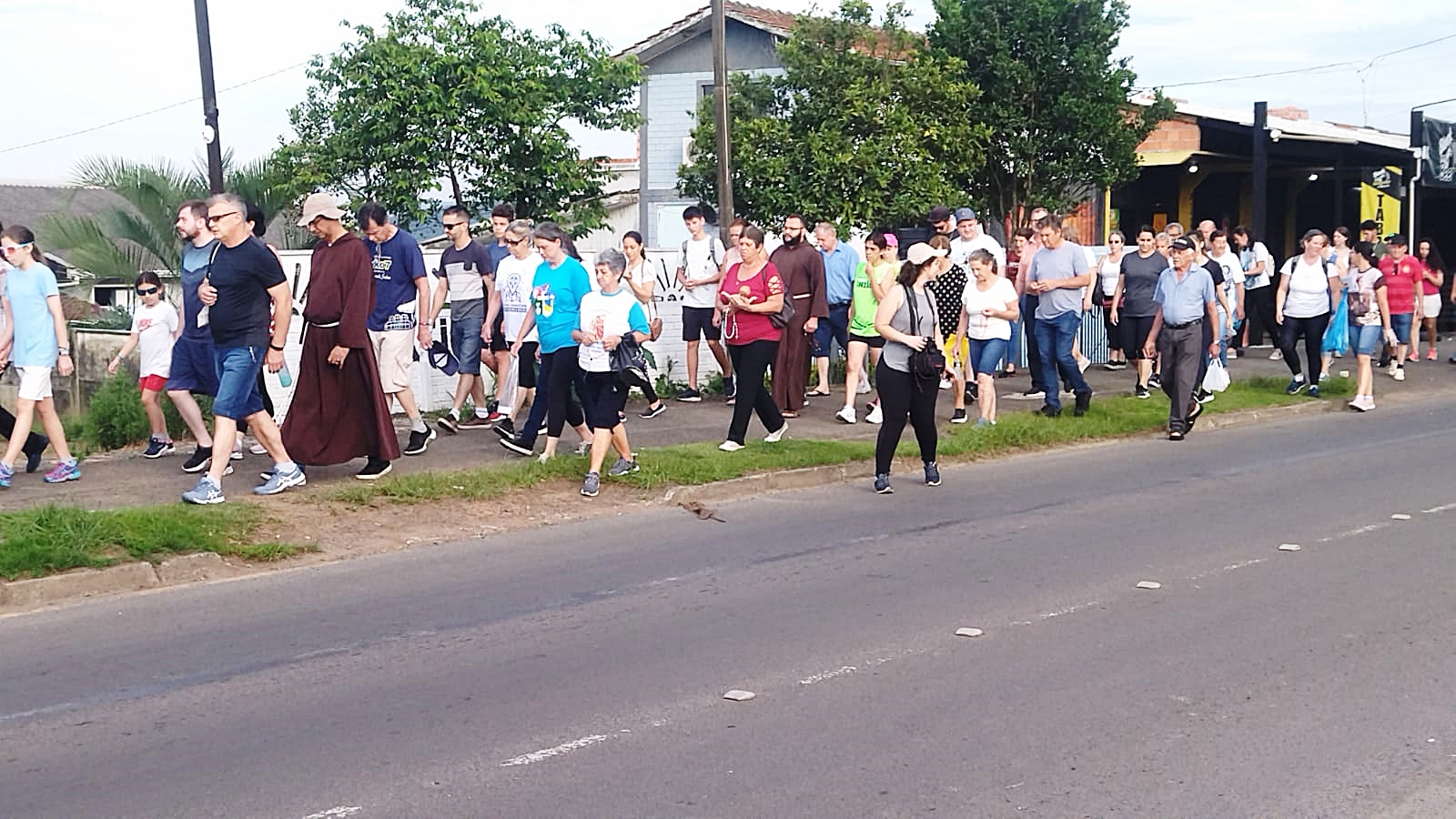 No total, 117 pessoas participaram da caminhada, que começou na Capela São Francisco de Assis e terminou na Unicentro, onde foi celebrada uma missa/Paulo Sava