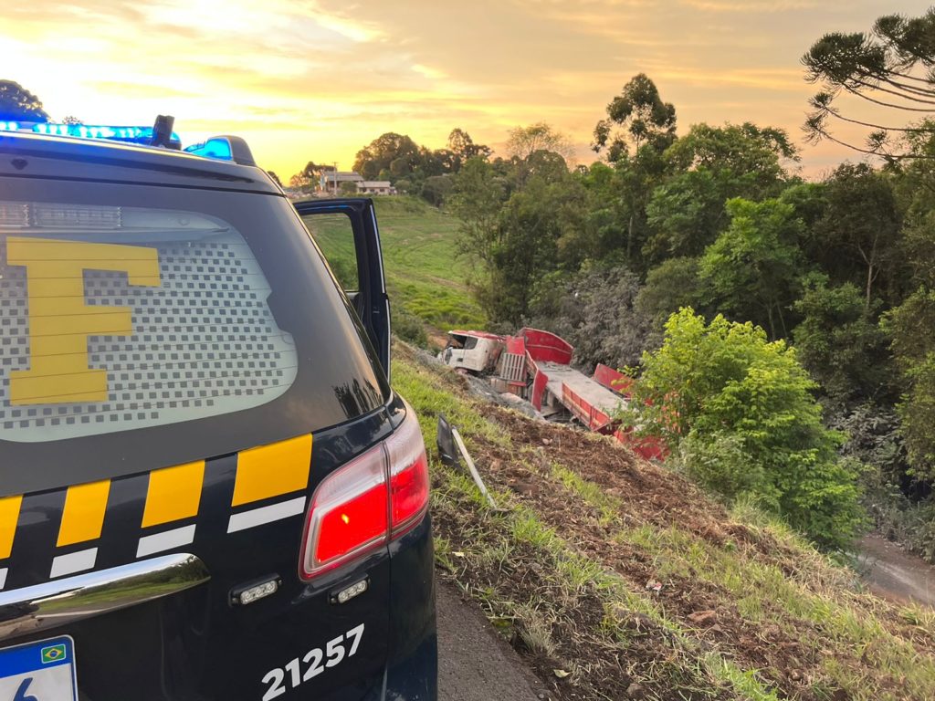 Acidente ocorreu em Teixeira Soares. Caminhoneiro paraguaio de 25 anos teve lesões leves