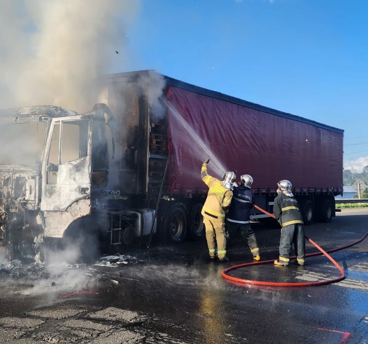 Os bombeiros utilizaram aproximadamente 4 mil litros de água para combater as chamas. A condutora foi orientada para aguardar no local por aproximadamente duas horas para realizar a retirada do caminhão e monitorar o retorno de possíveis focos de incêndio. A ocorrência foi repassada para a Polícia Rodoviária Federal (PRF).