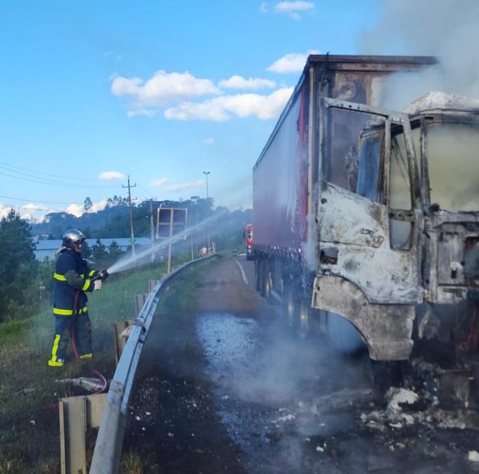 Os bombeiros utilizaram aproximadamente 4 mil litros de água para combater as chamas. A condutora foi orientada para aguardar no local por aproximadamente duas horas para realizar a retirada do caminhão e monitorar o retorno de possíveis focos de incêndio. A ocorrência foi repassada para a Polícia Rodoviária Federal (PRF).