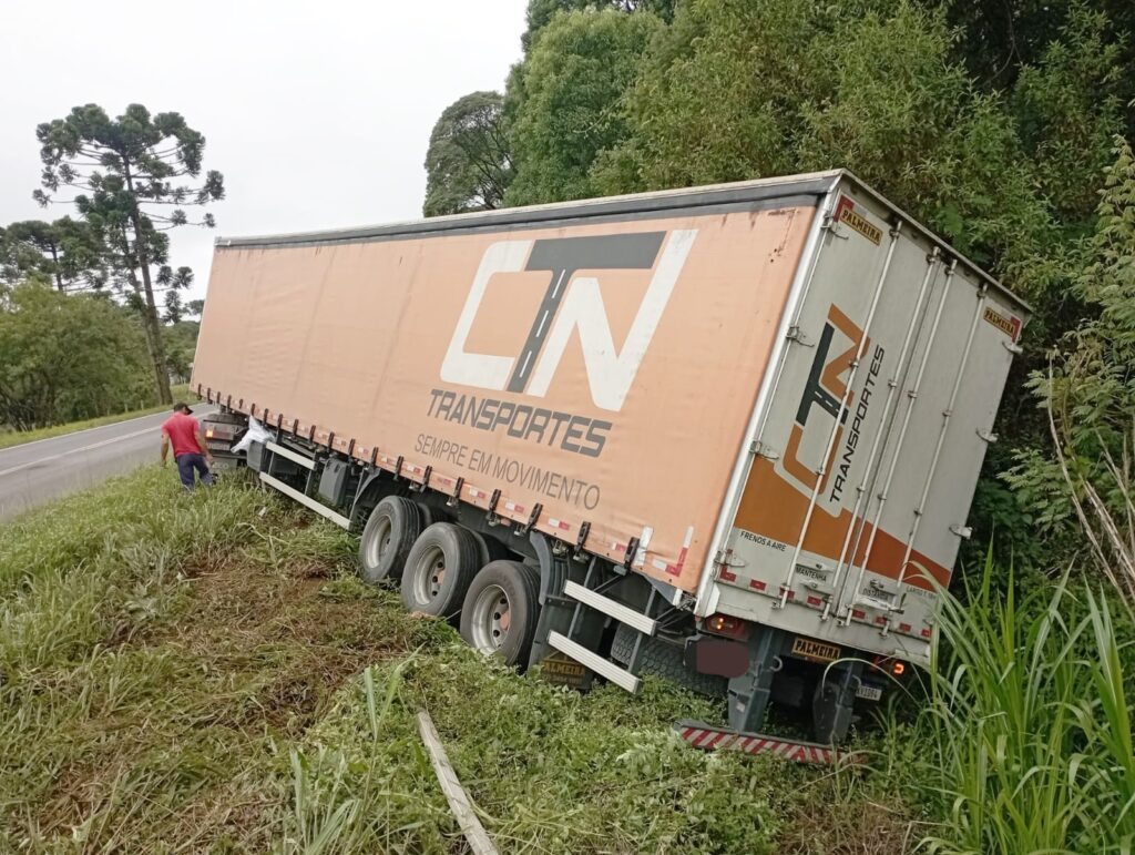 Outro caminhão tombou em São Mateus do Sul: Na PR-151, em São Mateus do Sul, um caminhão Iveco Stralis saiu da pista e tombou no quilômetro 470 da rodovia na manhã desta sexta-feira. O motorista, de 58 anos, sofreu ferimentos considerados moderados e recebeu atendimento dos bombeiros. Ele foi encaminhado ao Pronto Atendimento Municipal.