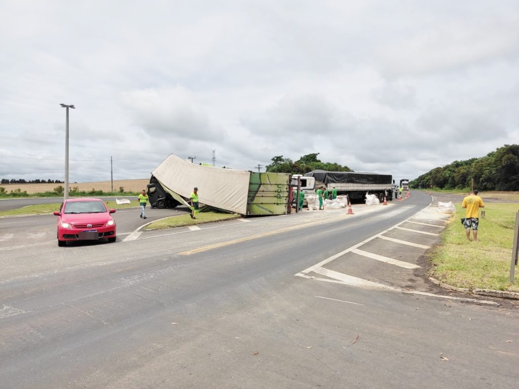 Com a batida, os caminhões ficaram sobre a via e obstruíram o trânsito de veículos em uma parte do trevo sentido Ponta Grossa. Uma parte da carga de milho da Scania ficou sobre a pista. Equipes do Departamento de Estradas de Rodagem (DER/PR) e funcionários da empresa proprietária da carga de milho realizaram o recolhimento da carga derramada, além de remover o caminhão Scania do local. Conforme a PRF, o transbordo da carga de embalagens e remoção do segundo caminhão ocorreram durante toda a madrugada durante o baixo fluxo de veículos.