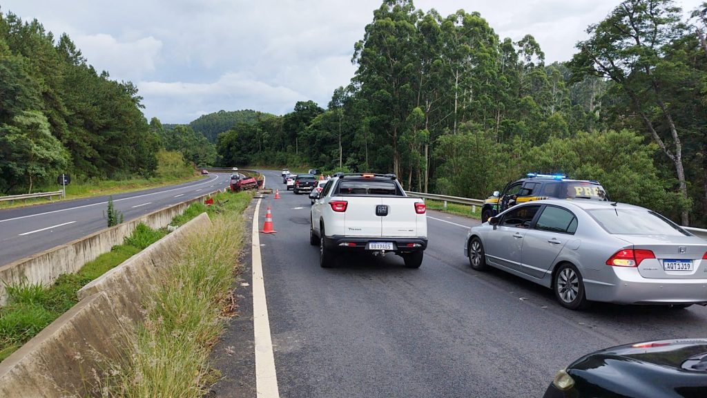 Ainda ontem, por volta das 15 horas, outro grave acidente foi atendido pela PRF, desta vez no quilômetro 403 da BR-376, em Tibagi. Um automóvel Citroën, com placas de Telêmaco Borba, seguia no sentido Ponta Grossa a Imbaú, quando a condutora perdeu o controle da direção e o veículo colidiu contra a mureta de concreto do canteiro central.