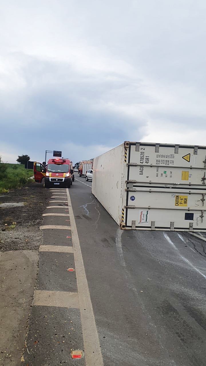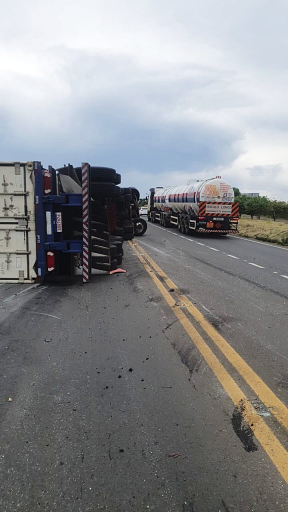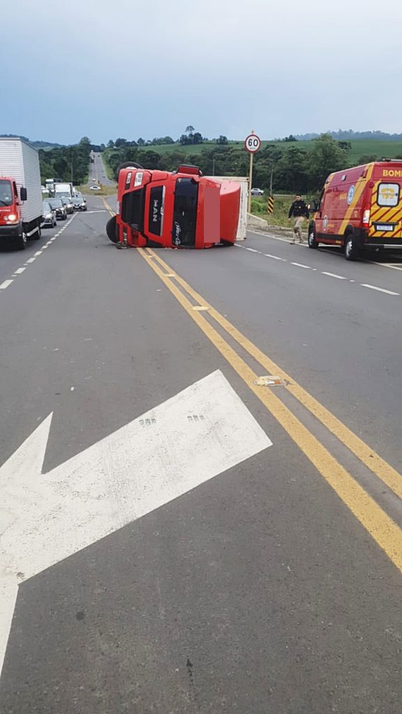 Fernandes Pinheiro – Em outro acidente, registrado na altura do km 232 da BR 277, em Fernandes Pinheiro, nesta terça-feira, um motorista ficou ferido após o tombamento de uma carreta com uma carga de frangos congelados.