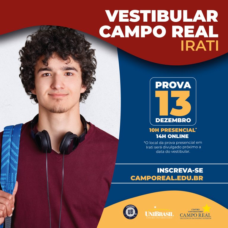 O Centro Universitário Campo Real está com inscrições abertas para o primeiro vestibular da instituição em Irati. O processo seletivo ocorrerá no dia 13 de dezembro, domingo.