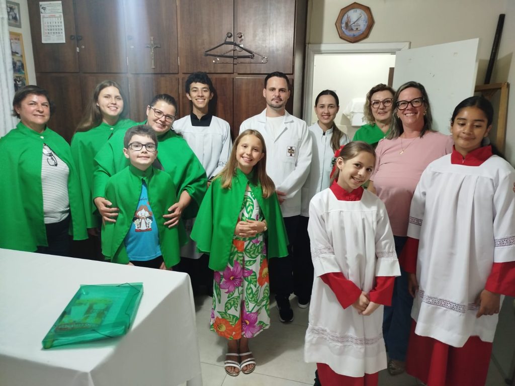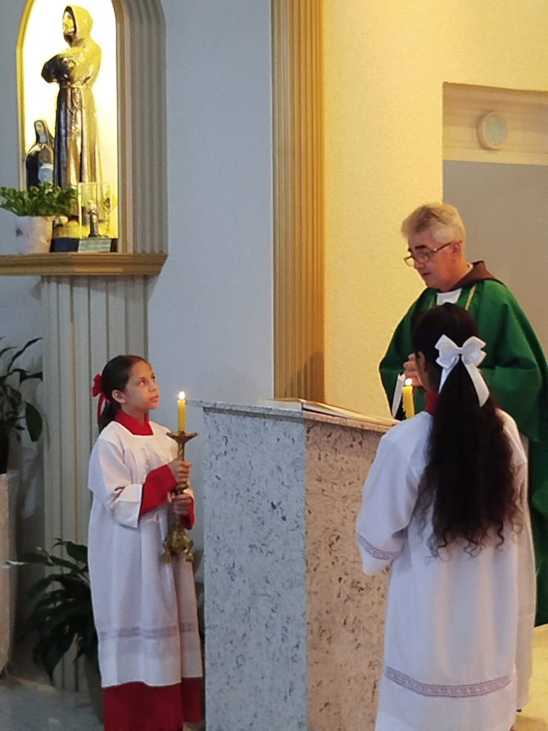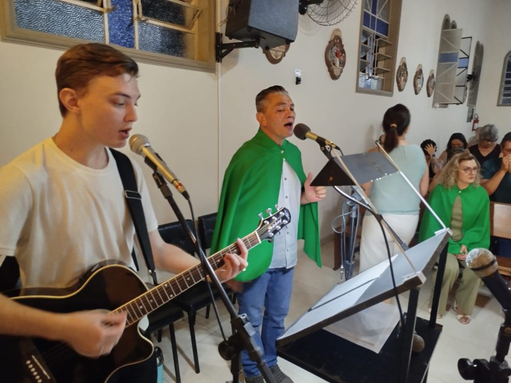 A celebração de sábado teve também colaboração da equipe litúrgica, acólitos, servidores do altar, crianças e lideranças da comunidade. A parte musical ficou por conta de Cristiano e Cristian Rogal, que interpretaram cânticos franciscanos.