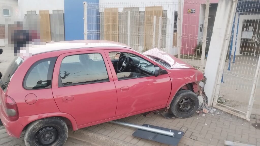 Uma condutora perdeu o controle da direção do seu veículo Corsa, que atingiu a mureta e a grade de proteção do Centro Municipal de Educação Infantil (CMEI) Professor José Maria Orreda, no Conjunto Joaquim Zarpellon, em Irati, na tarde de domingo.