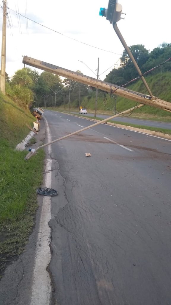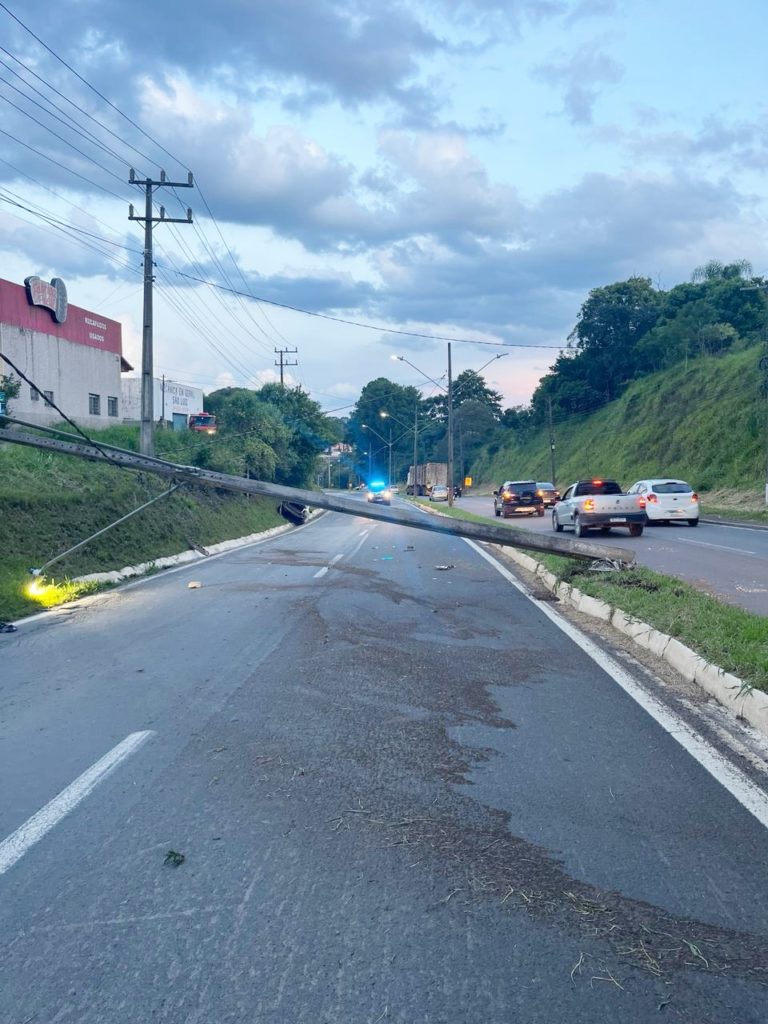 Poste caiu sobre a pista causando a interdição das duas faixas sentido Irati. De acordo com a PRF, motorista realizou o teste do bafômetro, que apontou resultado positivo para ingestão de álcool