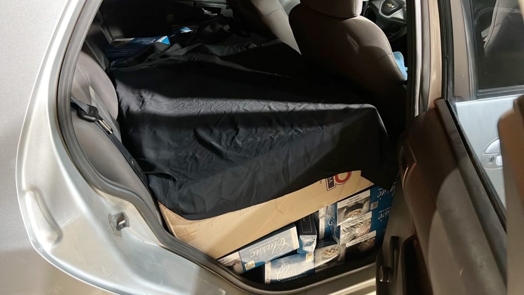 PRF apreende 4 mil maços de cigarros: Já na BR-277, em Guarapuava, a PRF apreendeu 4 mil maços de cigarros de origem estrangeira na madrugada de hoje. Os produtos estavam sendo transportados em um veículo Celta, que entrou de forma repentina em um posto de combustíveis após verificar a presença da viatura policial. Em vistoria no veículo, os policiais encontraram os maços de cigarro que estavam no porta-malas e no banco traseiro cobertos por tecidos pretos.