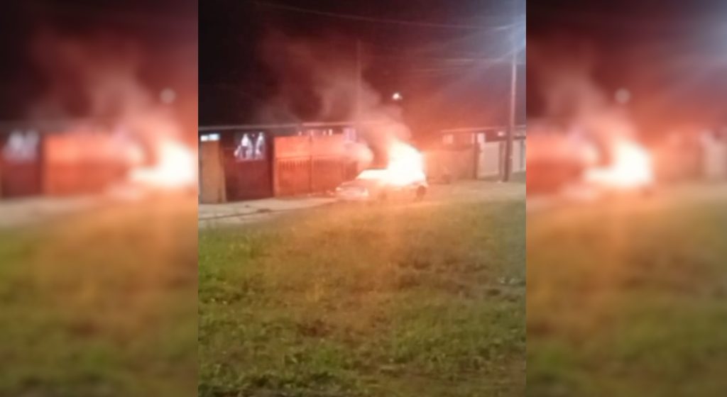 Durante o conflito, um dos suspeitos teria ateado fogo no carro pertencente a uma das vítimas e ainda feito ameaças de retornar para incendiar a casa. O automóvel ficou totalmente tomado pelas chamas e os bombeiros foram acionados para conter o fogo.