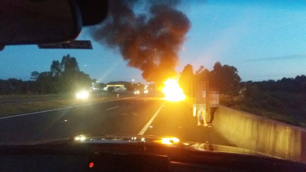 Um veículo Citroen C4, com placas de Balneário Camboriú/SC, pegou fogo na BR-376, em Ponta Grossa, na noite de segunda-feira, 2. Segundo a Polícia Rodoviária Federal (PRF), o motorista seguia no quilômetro 472 + 800 metros, quando apresentou falha mecânica no sistema de freios. Com isso, houve superaquecimento do sistema, que evoluiu para um incêndio nas rodas.
