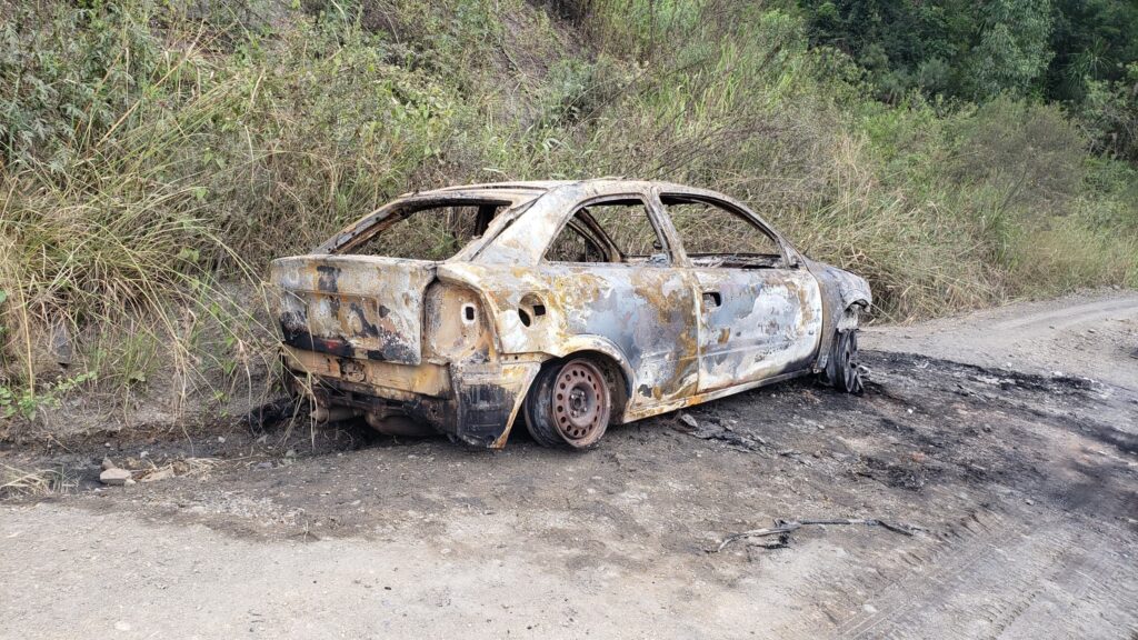 Um carro pegou fogo na localidade de Poço Bonito, em Rebouças, na noite de domingo. Os bombeiros comunitários foram acionados e controlaram o incêndio.