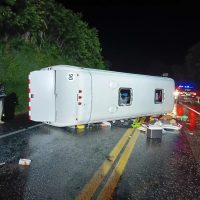 Ônibus de turismo que seguia de Balneário Camboriú (SC) para Assunção, no Paraguai, tombou após…