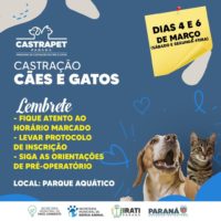Castrações de cães e gatos por meio do programa Castra Pet serão realizadas no sábado,…