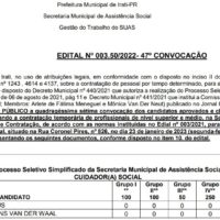 Convocadas devem assumir cargo de cuidador social. Candidatas devem se apresentar na segunda-feira, dia 23,…