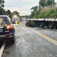 Engavetamento entre caminhões e van deixa quatro feridos na BR-376, em Ponta Grossa