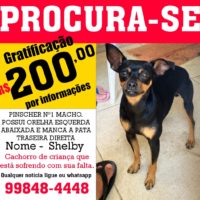 Desapareceu das proximidades do Morro da Santa um cachorro pinscher nº 1, preto com caramelo…