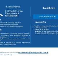 Hospital Erasto Gaertner de Irati está contratando Cozinheira – Requisitos: Experiência comprovada em cozinha industrial,…